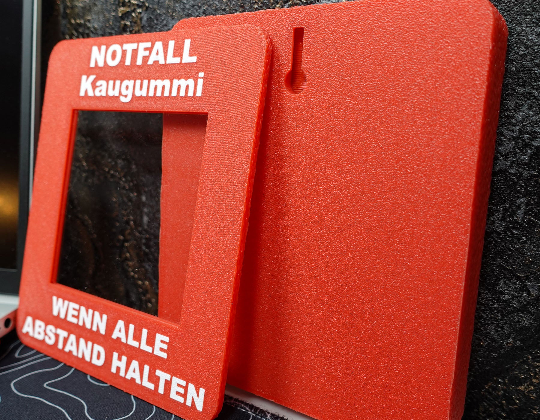 Beschriftung: „NOTFALL Kaugummi - WENN ALLE ABSTAND HALTEN“