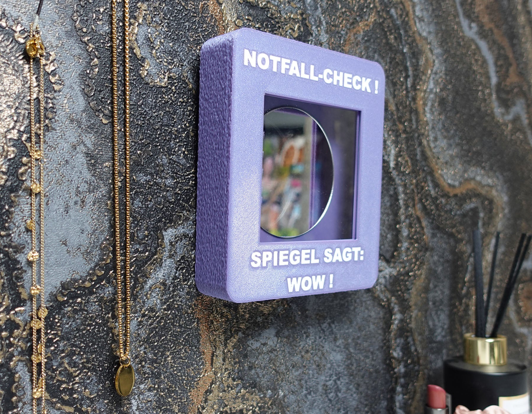 Mal ehrlich – manchmal braucht man einfach einen letzten Blick, bevor’s losgeht. Mit der NotfallBox „Notfall Check“ bist du für genau diesen Moment perfekt vorbereitet! In der Box wartet ein stylischer Acrylspiegel, der dir bestätigt, was du eh schon weißt: „Spiegel sagt: WOW!“ 💥